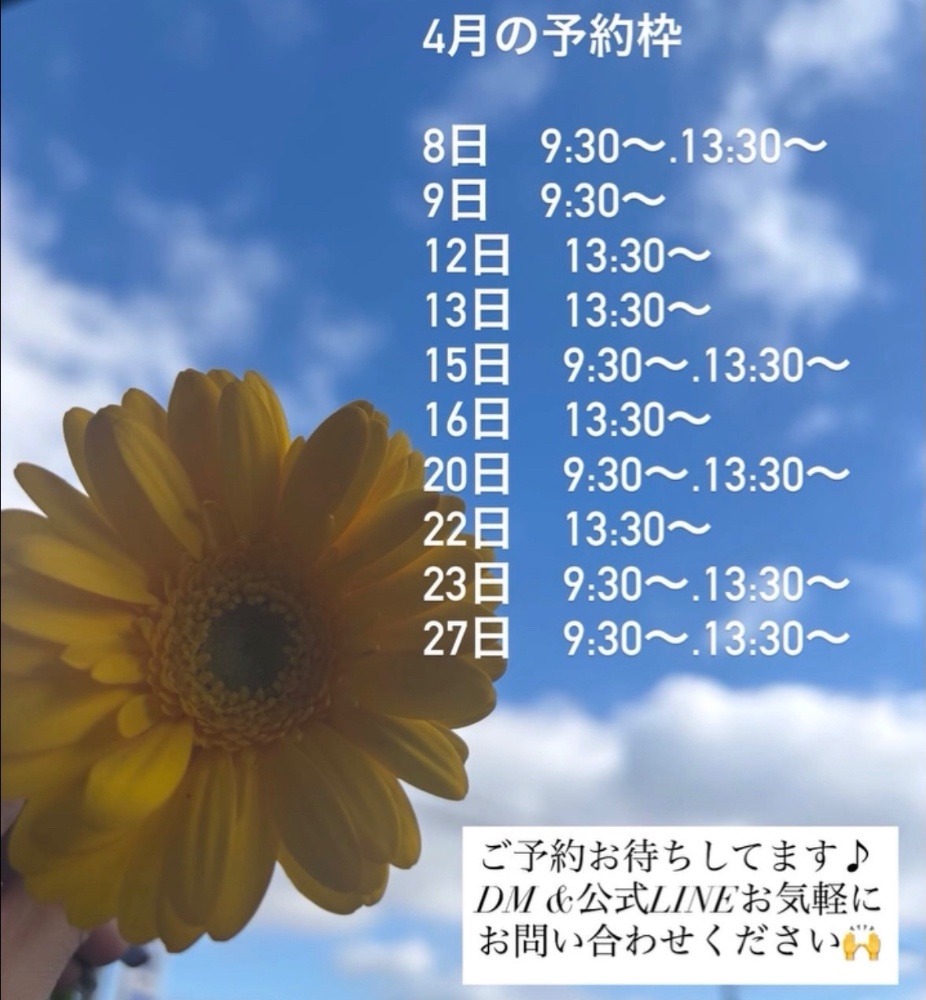 ※土日祝日や時間調整も対応できる場合もございますのでご相談くださいませ♪